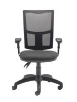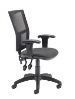 The Calypso 2 Mesh Office Chair with Adjustable Arms is the perfect solution for those who spend long hours at their desk. The breathable mesh back office chair provides excellent ventilation, keeping you cool and comfortable throughout the day. The 'permanent contact back' mechanism office chair allows for easy adjustment of the seat height and tilt, ensuring optimal posture and reducing the risk of back pain. The high back office chair provides excellent support for your neck and shoulders, while the star base with five castors ensures easy mobility around your workspace. Made from 100% man-made office chair fabric, this chair is durable and easy to clean, making it a great investment for any office.